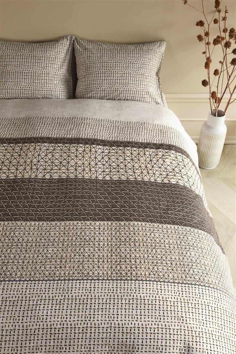 Het dekbedovertrek is gemaakt van hoogwaardig katoen, wat zorgt voor een zacht en ademend gevoel. De natuurlijke bruine kleur en het grafische dessin voegen een moderne en stijlvolle touch toe aan je interieur. Bovendien is katoen een duurzaam en onderhoudsvriendelijk materiaal, waardoor je langer kunt genieten van je aankoop.