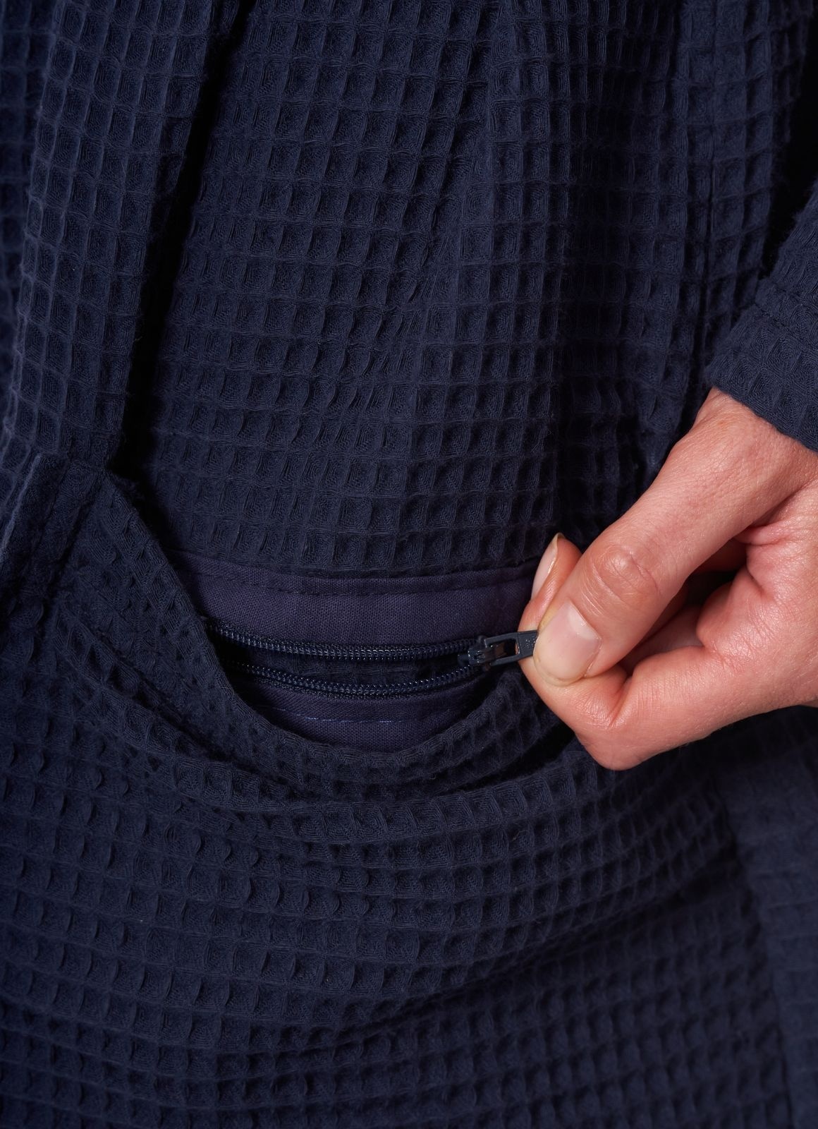 Morgenstern peignoir Andrea en tissu gaufré avec capuche 120cm bleu marine XL