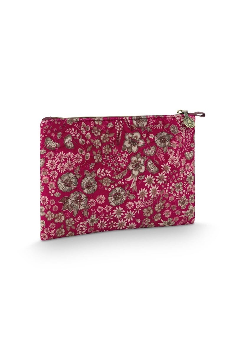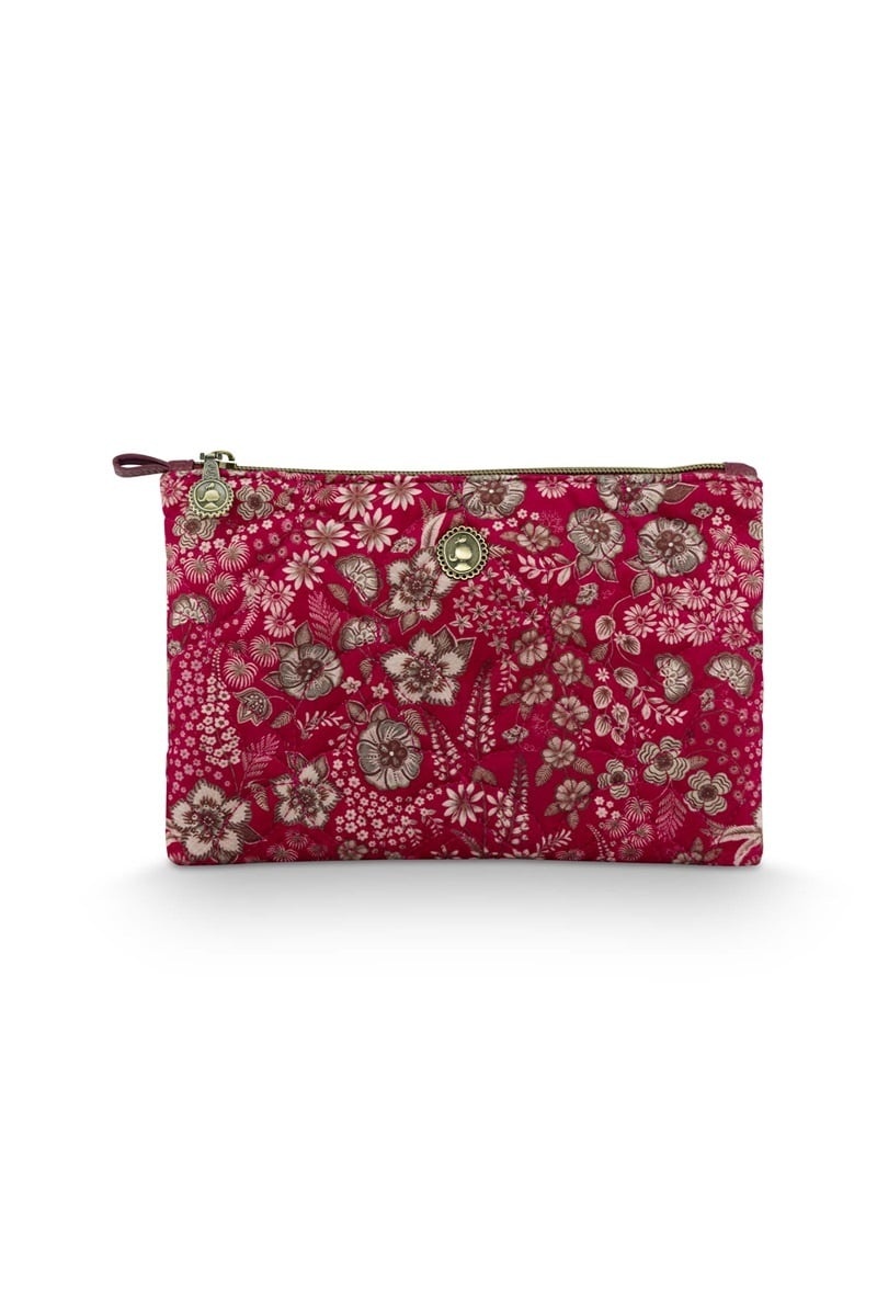 Pip Studio Charly Trousse plate cosmétique moyenne matelassée Daisy Dreams rouge 24x1x15.5cm