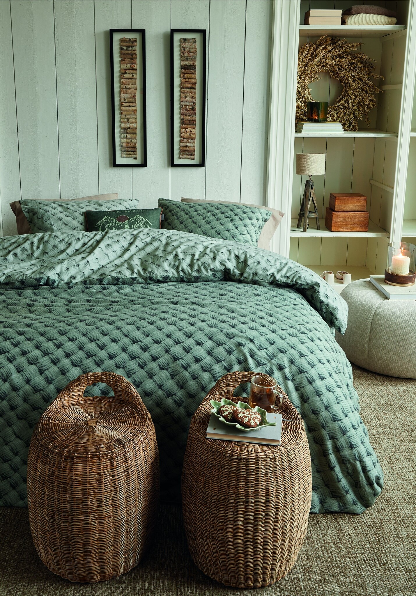 Rivièra Maison Housse de couette Woven Wool Vert 140x200/220 cm