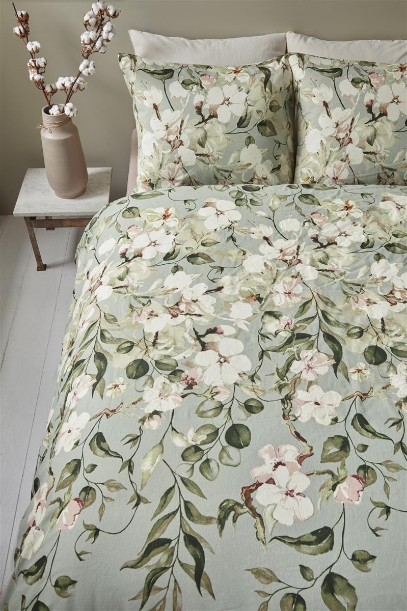 Dekbedovertrek Autumn Blossom uit de bedtextielcollectie van Ariadne at Home is gemaakt van heerlijk zacht katoenflanel. Het flanel is bij uitstek geschikt voor de koudere nachten. Met de mooie print van bloemen en bladeren, die natuurlijk uitwaaieren naar de onderkant van het overtrek, fleur je eenvoudig je slaapkamer op. Zowel de voor- als achterzijde van het overtrek zijn hetzelfde. Het overtrek is verkrijgbaar in meerdere kleuren.