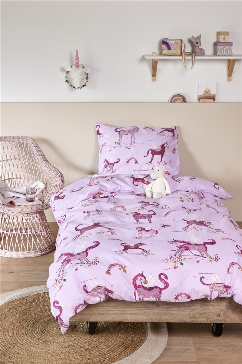 De samenwerking tussen Beddinghouse en Hanneke de Jager resulteert in een dekbedovertrek dat niet alleen comfortabel is, maar ook een lust voor het oog. Het dierenthema, met eenhoorns en andere fantasierijke elementen, prikkelt de verbeelding en maakt van het slapengaan een avontuur.