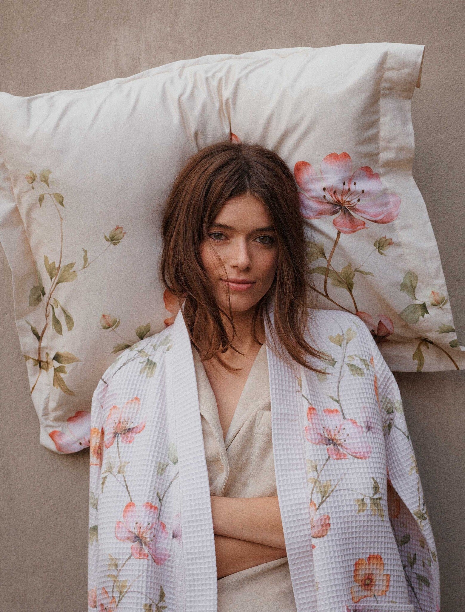 Deze badjas is niet alleen een lust voor het oog dankzij het prachtige bloemen & planten dessin, maar biedt ook ongeëvenaard comfort door het gebruik van katoen-wafel materiaal. De Vandyck Badjas AMY is ontworpen om u te omhullen in zachtheid en warmte, ideaal voor na een ontspannend bad of een verfrissende douche.